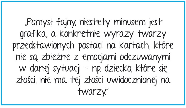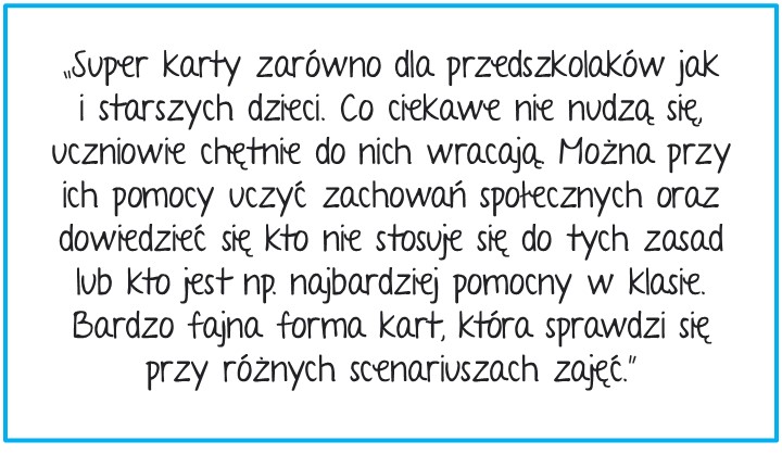 Karty są idealnym pretekstem do rozmów o przyczynach wprowadzenia zasad, ewentualnych konsekwencjach czy doświadczeniach dziecka. Dlatego tak ważne, by towarzyszyć dziecku w tej zabawie.
